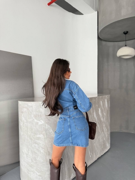 Сукня виконана з джинсового матеріалу з перевагою бавовни у складі. Приталений крій та довжина міні ефектно підкреслює фігуру.