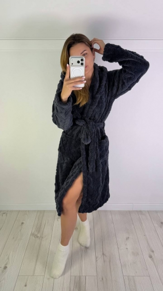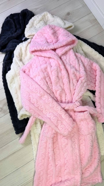 Халат с капюшоном, с двумя карманами, на запах, с поясом