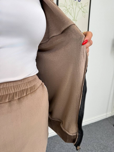 Трендовый теплый велюровый костюм на Флисе