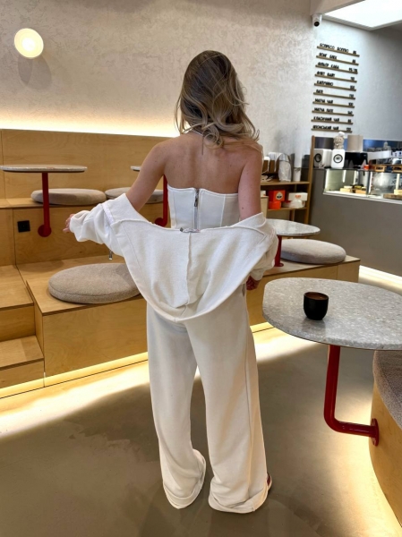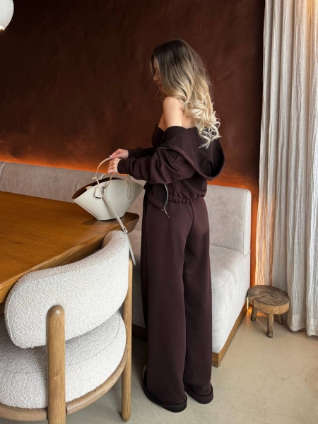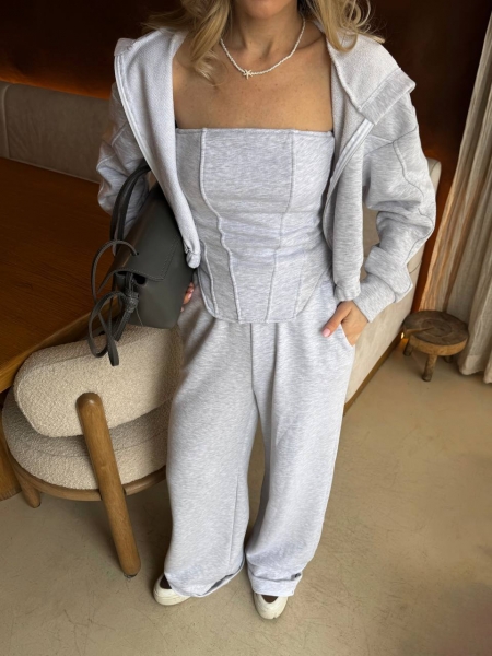 Костюм состоит из кофты с капюшоном, корсета и брюк.
