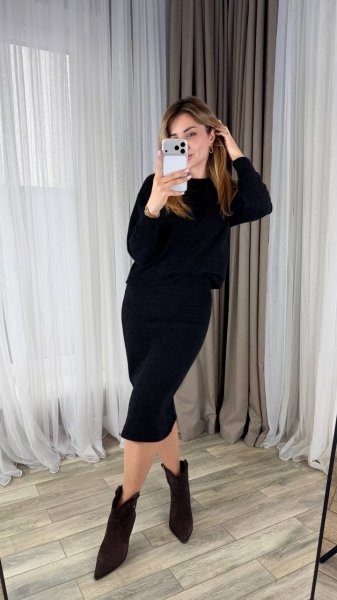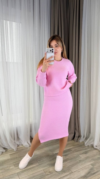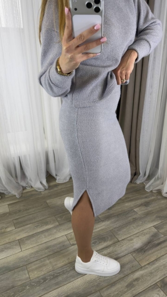 Костюм кофты свободного кроя, рукав с манжетом. Юбка талия на резинке, боковая с разрезом