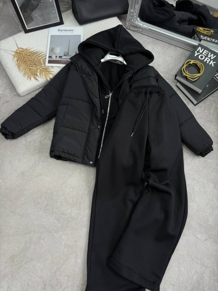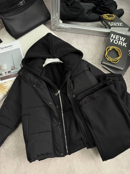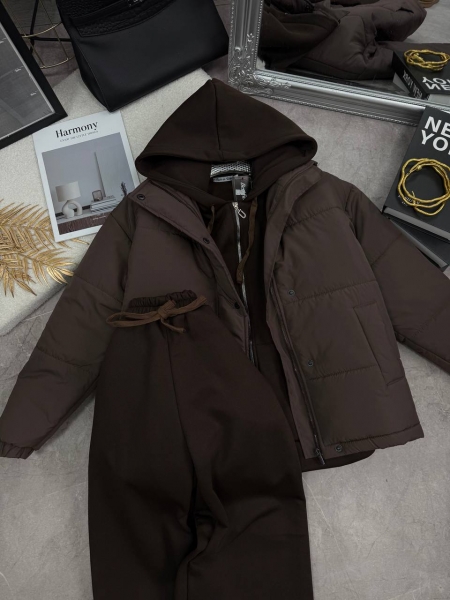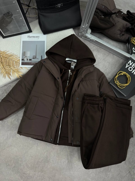 Костюм: Теплый на флисе, глубокий двойной капюшон, блузка кофта на молнии, брюки прямые, низ на затяжках