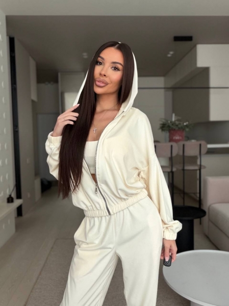 Мягкий велюр приятен к телу, красиво ложится и придает образ премиального вида.