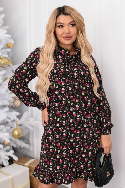 Цвет черный в горошек, цветочки розовые мелкие, цветки малиновые.