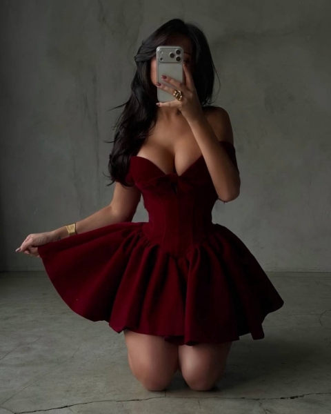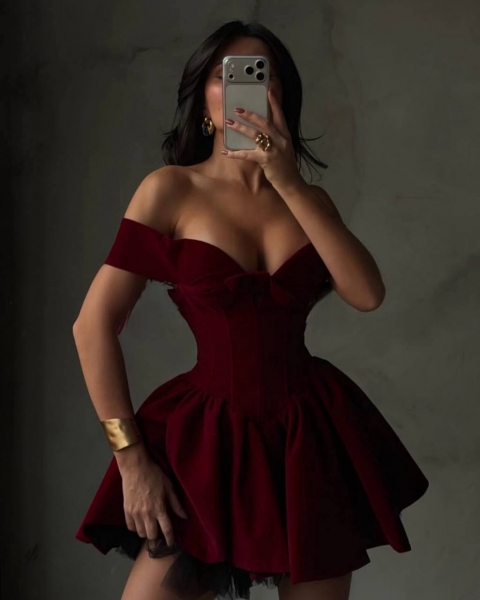 Бархатное корсетное платье с чашками. Хорошо держит грудь и подчеркну талию. Спинка на змейке. Ткань приятная мягкая к телу, хорошо тянется.