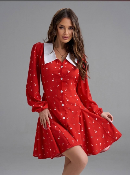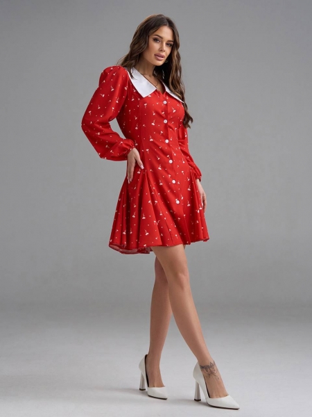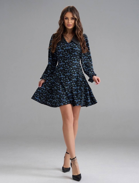 Описание : Невероятное трендовое платье с пышной юбкой-солнцем с клиньями и контрастным воротником, идеально впишется в твой гардероб.