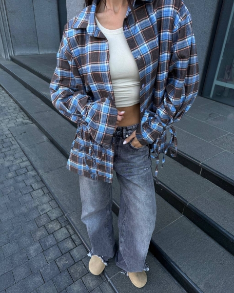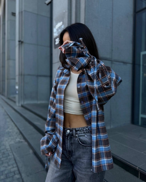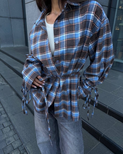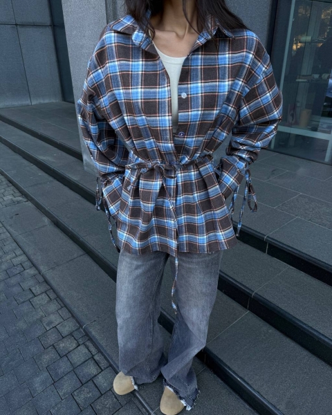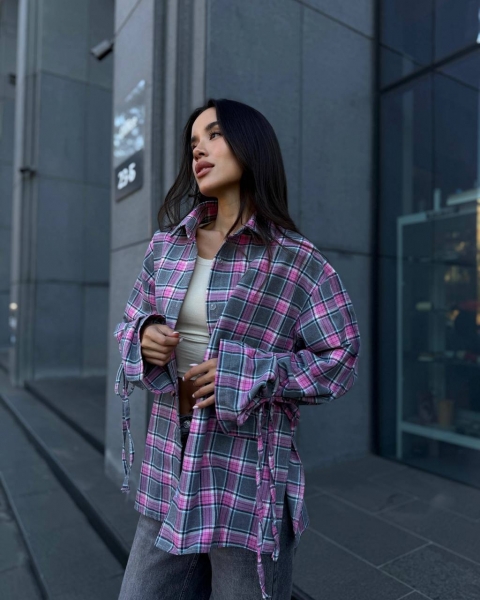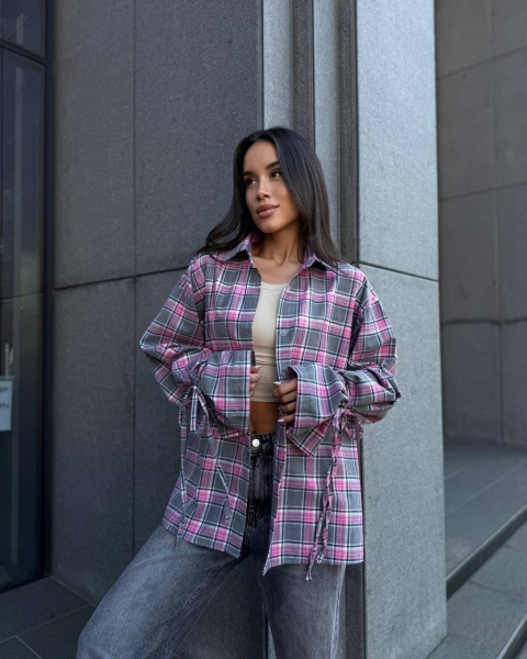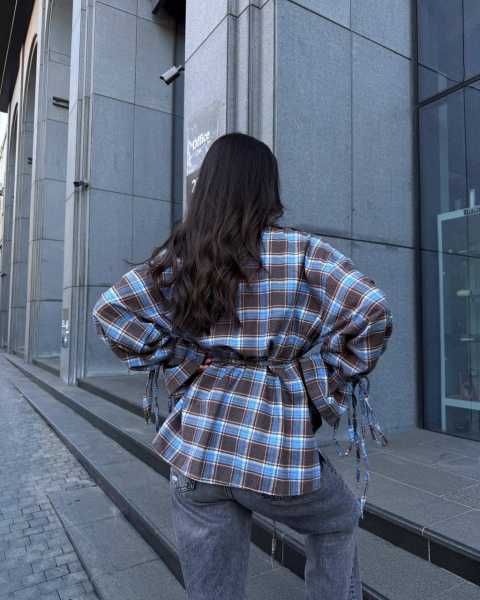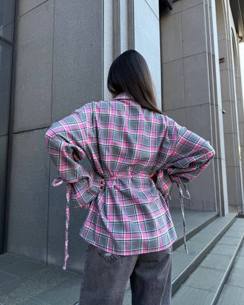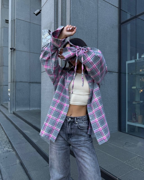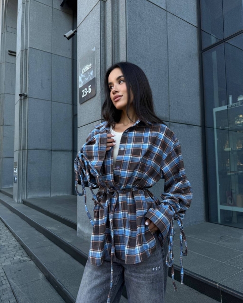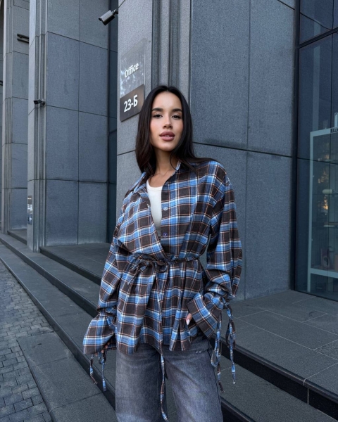 Базовая рубашка – кимоно оверсайз в клеточку на пуговицах, по сезону. В комплекте идут три шнурка. Различные виды ношения рубашки делают ее универсальной в твоем гардеробе. Мягкая приятная натуральная ткань.