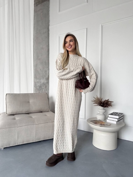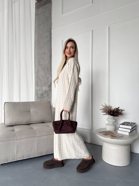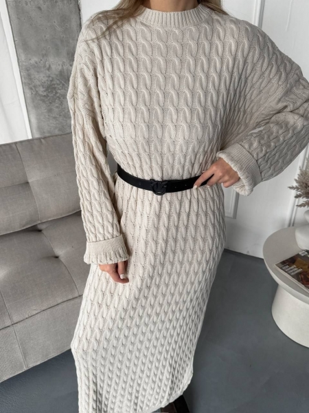 Платье выполнено из мягкой, тактильной пряжи в актуальной длине, не колется. Имеет плотную вязку, эффектно смотрится с ремешком.