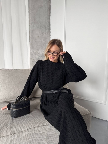 Платье выполнено из мягкой, тактильной пряжи в актуальной длине, не колется. Имеет плотную вязку, эффектно смотрится с ремешком.