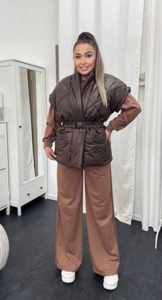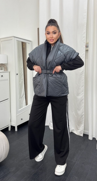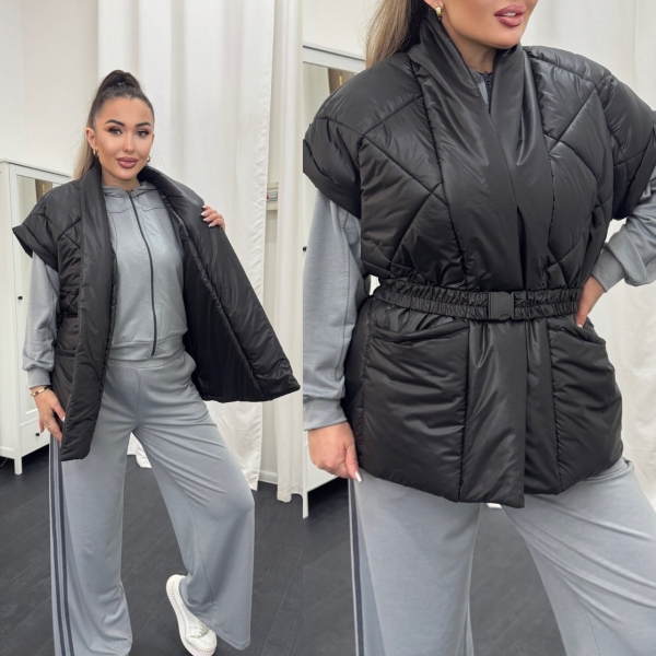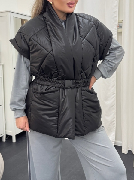Описание: Теплый и стильный стеганный жилет с большими накладными карманами под пояс.